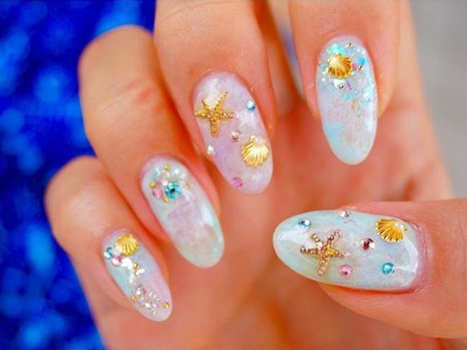 夏にピッタリ アリエルネイルのデザイン集 海や貝殻モチーフのディズニーネイル